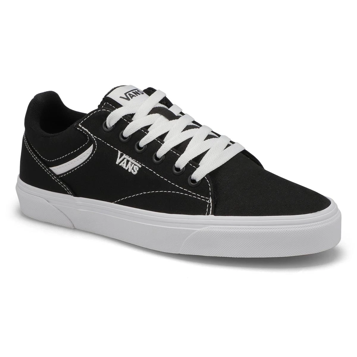 Show the world you know what’s up with the rebel style of the Seldan black/ white lace up sneakers from Vans. You can’t go wrong with a classic canvas sneaker and the Seldan from Vans is a versatile choice. This low-top will pair with nearly any casual outfit! This style combines the original and now iconic Vans low top style with sturdy uppers, metal eyelets, and signature rubber waffle outsoles.